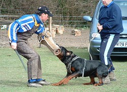 dogs are not usefull in this sport. The "bitework" in the sleeve